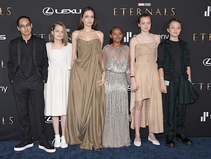 The Oscar winner invited all her children — Maddox, 20, Vivienne, 13, Knox, 13, Shiloh, 15, and Zahara, 16 — to the event. Angelina, who plays warrior Thena, wore a draped Balmain Resort 2022 gown, while her kids “upcycled [her] old stuff”. Zahara’s outfit was the same dress Angelina wore to the 2014 Oscars. Pax, 17, didn't attend the premiere.