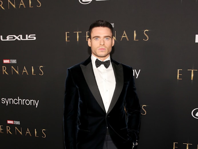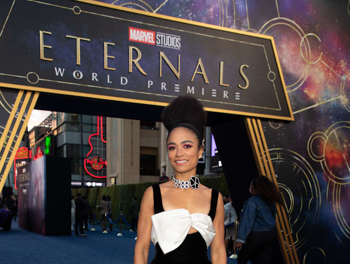 The London-born Crazy Rich Asian stars — seen here in a white feathery Louis Vuitton gown — plays Sersi in Eternals. It’s Gemma’s second MCU movie: she was the blue-skinned Minn-Erva in 2019’s Captain Marvel.