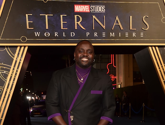 Like Kumail, the Atlanta actor went for purple, in a custom suit from Alba. Brian plays Phastos, the MCU’s first openly gay character.