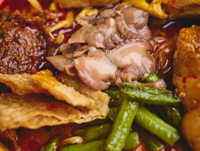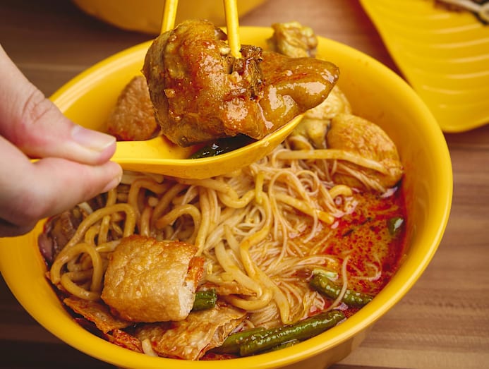 This dish is usually called curry mee in Penang – though the version here doesn't come with the usual soupy lemak broth up north (so coconutty that it’s white, flecked with bits of red) bolstered with a spicy rempah. The consistency of Song Maw’s curry mee broth is closer to a richer curry with a thick, creamy mouthfeel. “Depends on where you go [in Penang]. Some are thinner, but the one we do is thicker,” he says.