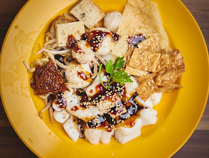 Song Maw claims to have come up with this dish himself, calling it an adaptation from “Northern-style chee cheong fun”. We’ve never had rice noodle rolls like this – you’re getting a splash of “secret sauce” (which tastes like it has hae ko in it) and various components like meatballs, tofu skin and beansprouts, plus chilli sauce. Everything from the rice noodle rolls to the bits and bobs are factory-made, though the hawker aims to “make the meatballs by hand from next month”. It’s interesting and savoury enough to share as a side dish, but not something we’d recommend in particular.