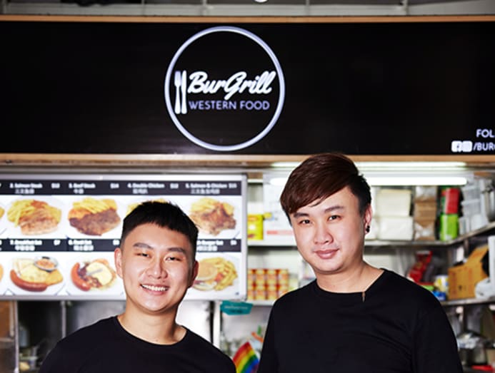 Feeling “tired of life” after his career upheavals, Algin (left in pic) worked at a cold-pressed juice company for half a year before his brother, Milton Tan (right in pic), 35, offered to set up a hawker stall with him. The duo opened Western stall Burgrill at Hong Lim Market & Food Centre, right beside their hawker aunt’s stall called Salted Egg Rice.