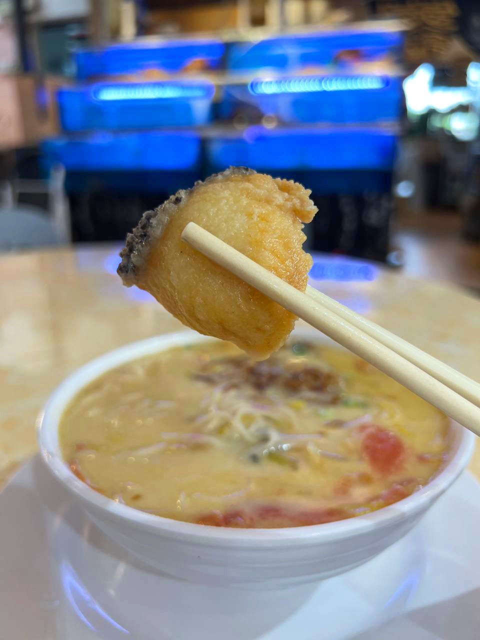 You get the same tasty broth with five lightly-battered fried fish slices. We personally prefer fried fish with our soup, but these slices are a little tougher than usual. That said, we are pretty impressed that they still retain their crispiness despite soaking in the soup for a while.