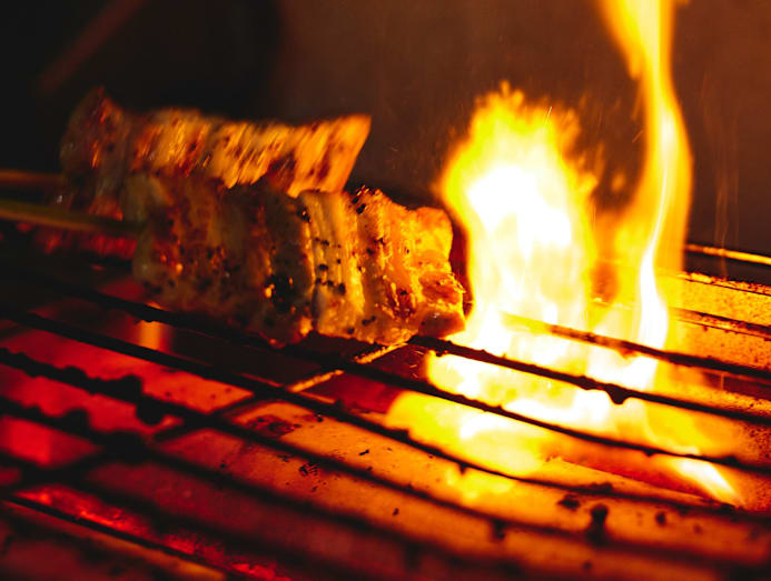It was Yiew Jian who worked the gas grill during 8days.sg’s visit, flipping the skewers in between applications of tare (a sweet-salty Japanese soy-based glaze). On offer: eight skewers that you can order with tare or plain salt (we opted for the former), ranging from $3.50 to $6.90 for the premium Iberico pork belly sticks. You get two sticks per order. There are also a la carte dishes or bento sets with Japanese rice, miso soup, an onsen egg and a small side dish.