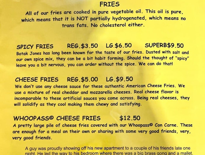 A set meal gets you Cajun fries and coleslaw, and you can also opt for add-ons like Garlic Sautéed Shiitake Mushroom ($2), Fried Egg ($1) and Whoopass Con Carne ($3, see below for our review).