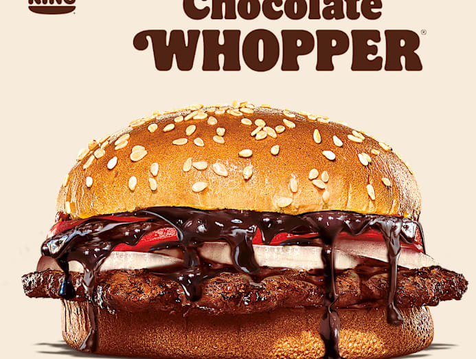 The burger comprises the usual Whopper ingredients, such as a flame-grilled beef patty, tomatoes and onions sandwiched between sesame buns. Oh, and it’s also “dressed with a layer of rich chocolate sauce [with] swirly richness”. Yea or nay? You decide.