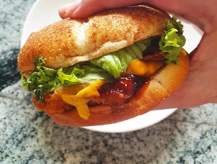 Despite its innocuous looks, this burger caught us off-guard with its fiery punch — it was pretty tongue-searing for folks like us with a lower tolerance level for spice. The sweet-salty sauce coating the crispy, tender chicken patty is like a slightly milder version of the Samyang range of Korean fire instant noodles that has a reputation for being hella hot.