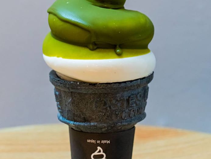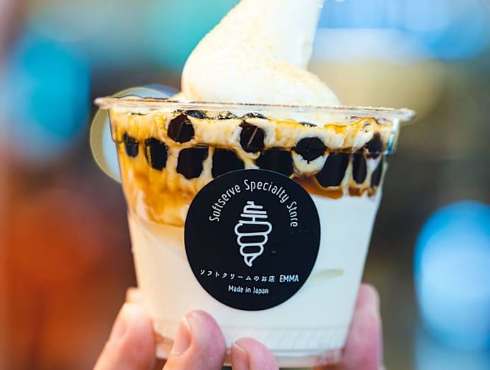 Unlike the fancier outlets in Japan, the one at Plaza Singapura is a simple takeaway kiosk that shares a counter with its neighbour, Taiwanese food kiosk Snackz It Ke Kou Wei (owned by one of Emma’s Singaporean investors) and seats just eight. The menu in Singapore is also a streamlined version of the one in Japan. Drinks like roasted green teas with tapioca pearls as well as savoury and sweet crepes have been left out. But we do get the Boba Taco Softie (see below) and charcoal cheese flavoured soft serve, which is only available in Singapore.