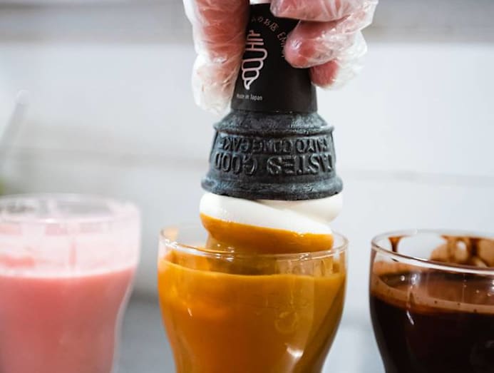 It may not look as photogenic as the signature item on the menu, but the layering of different flavours really works in this combination. We love the counterbalance of the smoky Okinawa brown sugar pearls against the milky soft serve and the nutty finish of the Japanese kinako (soybean) powder.