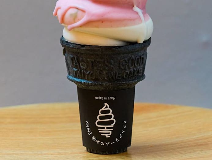Okay, Pocky? If you’re a fan of those childhood snacks, you’ll love this. The dip doesn’t taste too artificial or sweet and has that familiar strawberry Pocky scent we adore. And it goes great with the creaminess of the soft serve — strawberries and cream are a classic combination. The ice cream comes on a charcoal wafer cone that’s specially imported from Japan. The colour is interesting, but we didn’t find anything special about them otherwise. We’d much prefer traditional sugar or waffle cones to these, which tend to be bland and have a cardboard-y texture.