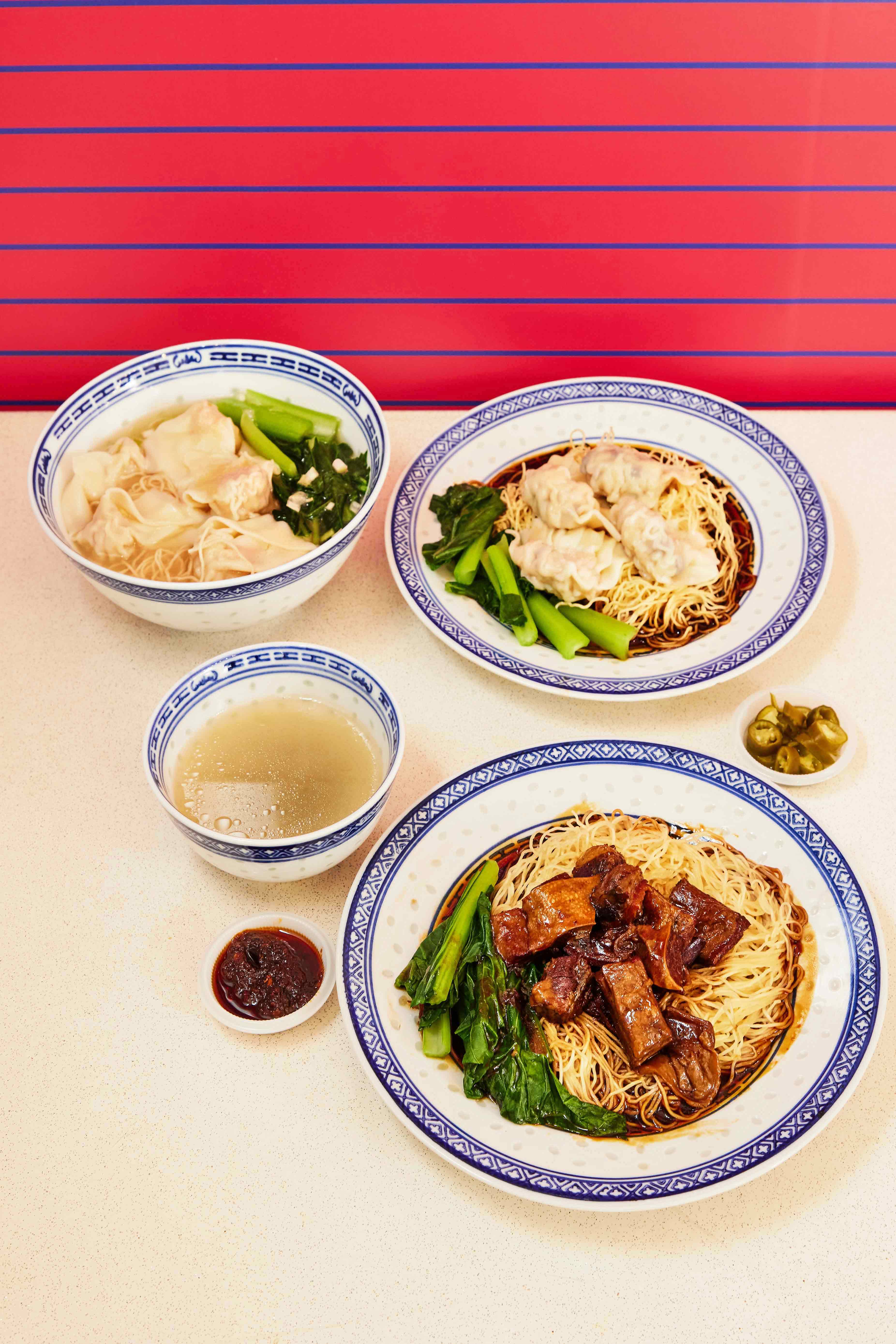 Expect the same three noodle dishes at the same prices across all three stalls: HK Wanton Noodle ($5), HK Dumpling Noodle ($5) and HK Braised Brisket Noodle ($5.50). The wantons and dumplings are also available as side dishes in a bowl of soup or as a deep-fried snack. Think springy duck egg noodles in an umami-rich soup stock comprising old hen, Jinhua ham and dried flounder, along with savoury shui jiao and wantons. Remember to get a bowl of tender beef brisket noodles too.