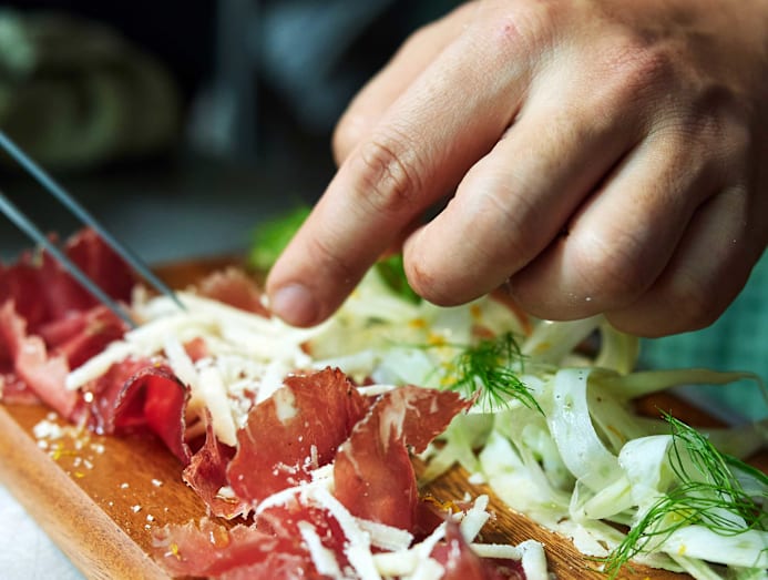 Paper-thin, salty house-cured beef paired with the wonderful crunch and mild sweetness of white fennel from Italy and shaved parmesan make this a refreshing starter to your carb-heavy meal.