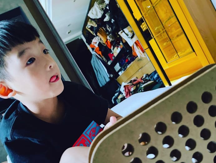 On Tuesday (Jul 6), Christine, 45, posted a few photos of her and one of her six-year-old twin sons, River, playing a kind of puzzle game called Lianliankan.