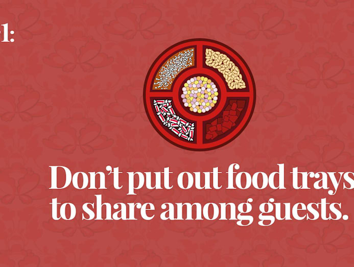 Laying out trays of snacks, sharing them and exposing your precious pineapple tarts and other food to possible germs and people talking over them can be risky, say health experts. Cover food and offer individual portions to guests instead.