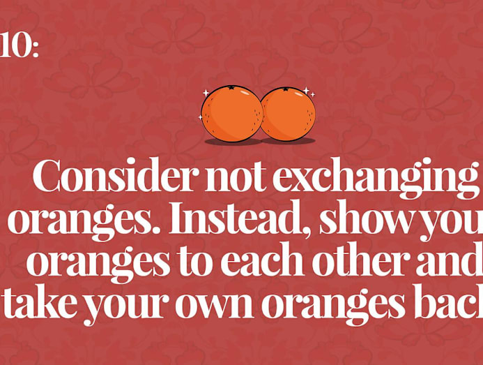 Instead, show your oranges to each other and take your own oranges back. Treasured customs can be modified in a pandemic, surely.