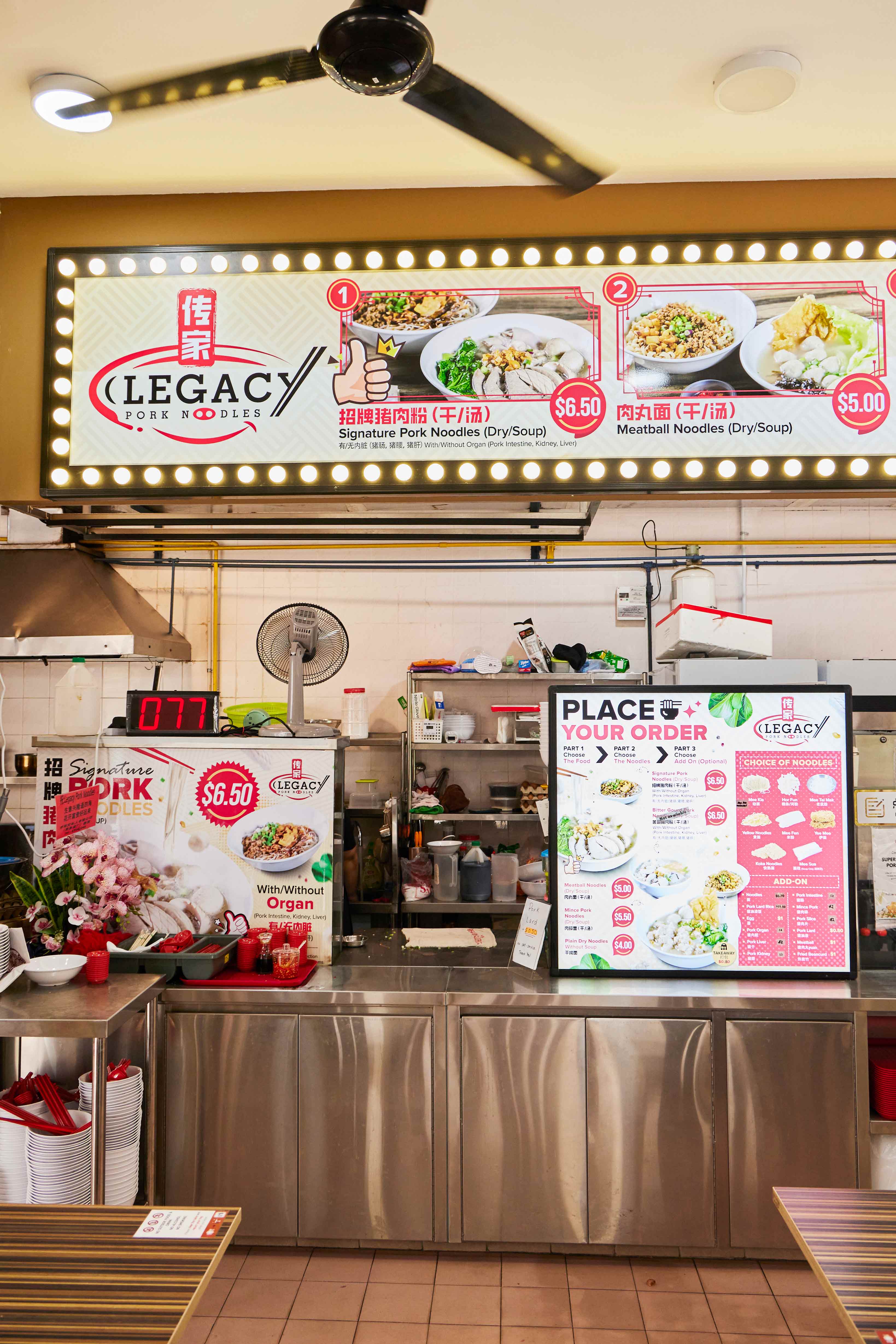 The stall’s name, Legacy Pork Noodles, was inspired by Ian’s brother. “When I was training at his shop, we started chatting about his plans for the future. He said our family isn’t rich and our parents have nothing to pass down to us, so he hopes that he can leave a legacy through his recipes. In the future, if our kids don’t want to study, at least they have an option to carry on with our business,” he shares.
