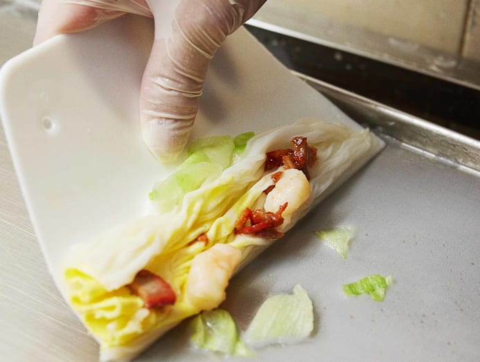 “If it’s someone’s first time and they can’t decide what they want to get, then we’ll recommend the Ying Yong as it has a bit of everything.” In between the paper-thin sheets of rice roll, the Ying Yong Rice Roll has bits of fresh prawn, char siew, cabbage and strips of egg.