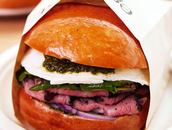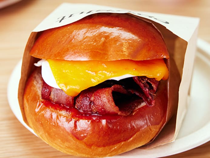 The Fairfax sarnie is the most heavily Instagrammed among Eggslut’s menu items. Just looking at it makes us hungry; a generous dollop of the painstakingly-cooked soft scrambled eggs is plopped on top of a warmed brioche bun drizzled with sriracha mayo, gently blanketed with grill-melted cheddar, caramelised onions and another warm bun (add $2.50 for sliced avocado).