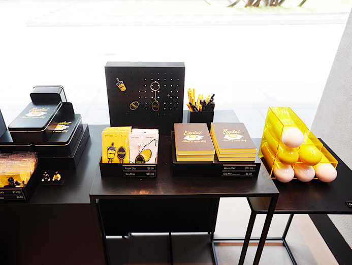 Like Shake Shack’s themed merchandise, there’s also a small selection of Eggslut merch such as an umbrella, memo pad and Lego figurines.