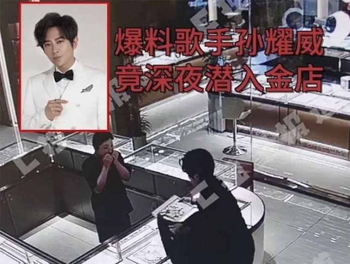 What made this particular crime so interesting were the words “Singer Eric Suen exposed sneaking into a jewellery shop late at night” stamped over the clip along with a photo of the Hongkong star.