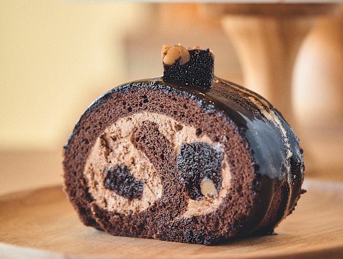 There are five main Swiss roll flavours available: Fudgy Brownies, Blackforest, Strawberry Pistachio, Lemon Meringue and Caramel Biscoff. “We will also have seasonal flavours,” says Marcella. Each slice costs a flat $5.20 (or $15 for a whole roll), and you can also tapow the rolls in boxes of two, three or five slices.