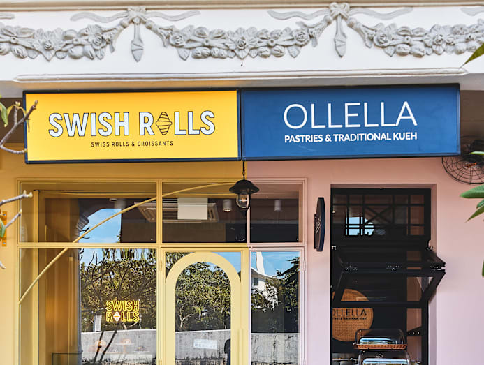 Her kiosk (there are four al-fresco seats if you want to savour your bakes on the spot) is located next to the Botanic Gardens’ Bukit Timah gate. The unit is split; Swish Rolls takes up half of it, while Ollella occupies the other half as a hole-in-the-wall selling its signature takeaway kuehs like kueh dadar and yam cake out of a large window.