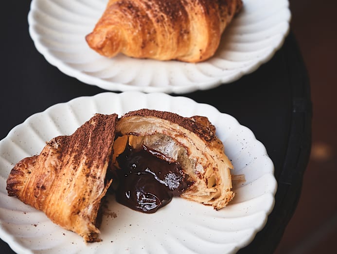 Flowy Valrhona dark choc ganache oozes out of our croissant when we tear it in half, enhanced with a light touch of sea salt and cocoa powder. Sultry and toothsome enough, though it’s the other flavours we will tapow extras of.