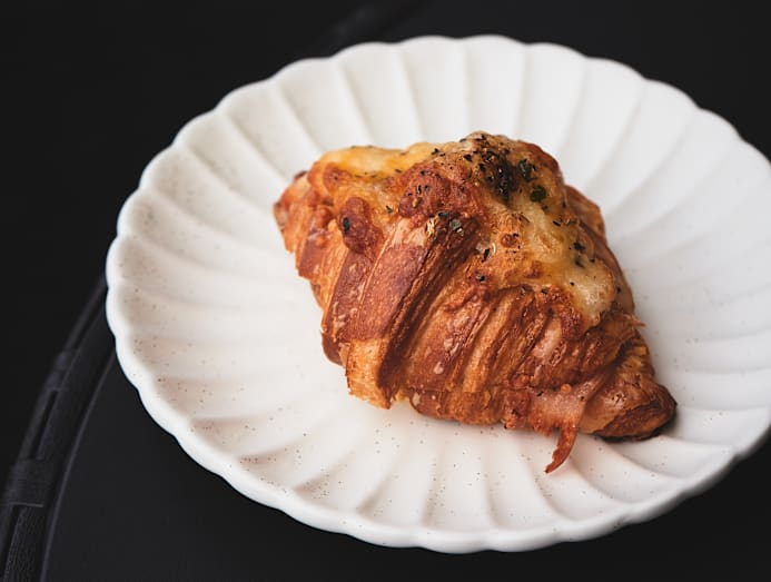 It’s a good sign when our favourite pick for the croissant selection is this unadorned, original flavour, which is simply glazed with sugar syrup and a sprinkle of sea salt. French butter is used for our fresh-out-of-the-oven, madly buttery croissant, which boasts a delicate, crisp sweet-savoury shell and soft body that remains tasty after a quick stint in the oven the next day.