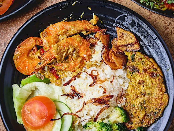 The stall’s name, Bangla Lim (and Lim's face), is everywhere — on T-shirts, paper bags and cutlery. “We wanted something with Yousof’s name, but he refused. He said ‘you’re the boss’, it should be you. I think it’s a cultural thing [about not claiming credit],” he says. “Eventually, we decided on Bangla Lim. It’s catchy and easy to remember.”