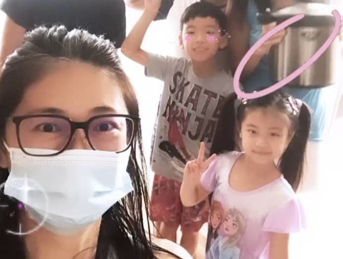 The next day, Carole and Brooklyn went over to Joey’s place to collect their food — a delicious pot of fried bee hoon for lunch, and fried rice for dinner. Yum. Oh, and in case you were wondering, that's Joey's three sons — Kynaston, 14, Jefferson, 11, and Algernon, seven — in the picture above.