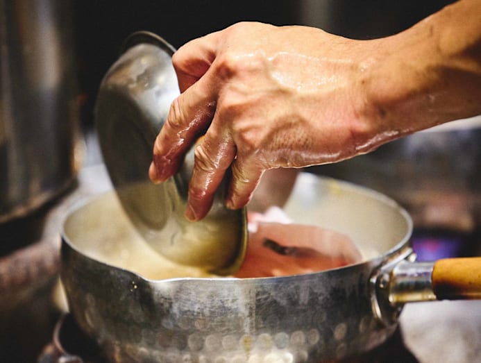 Though he’s left behind the relative comfort of being an employee with off-days and sick leave, some things, like his culinary pedigree, remain intact. “We use a thermometer when frying fish. Your [judgement] can be wrong, but [cooking instruments] will never go wrong,” he says. The same goes for Jin Keng – we watch as he measures out their house blend of powdered dried sole fish, first fried and ground into powder by themselves, tang chye (preserved cabbage, similarly dried and powdered) and other secret ingredients on a scale. There's no guesswork here.