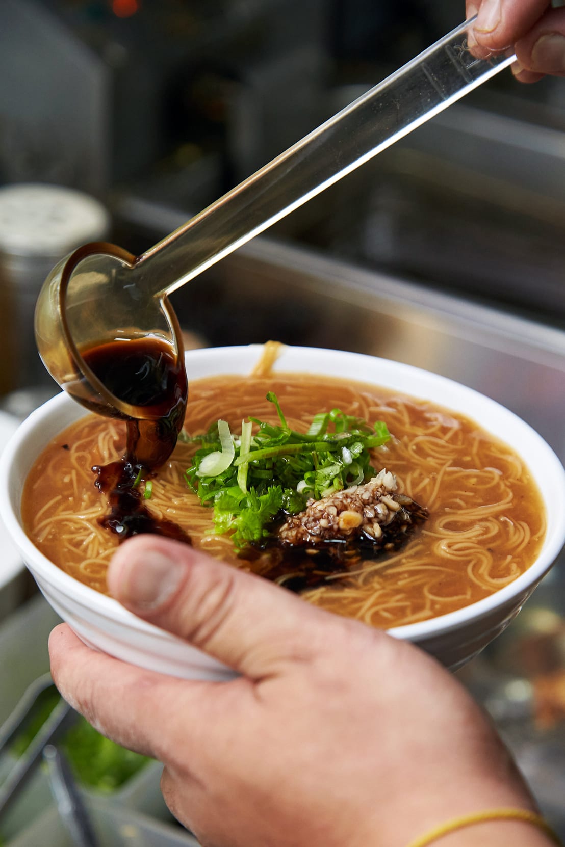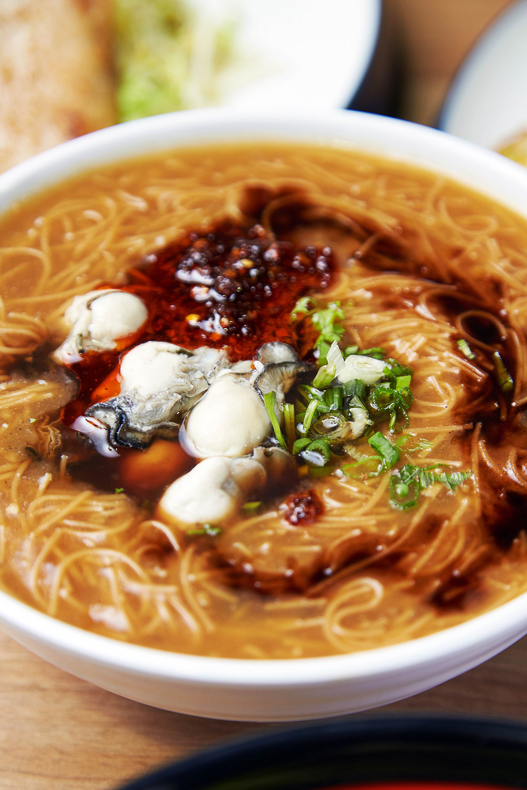 Umami-rich bonito flakes form the base of this competent bowl of mee sua, contrasted against the intensity of a heaping spoonful of minced, raw garlic and a generous splash of black vinegar. While we enjoy it, those who aren’t fond of the punchiness of raw garlic might want to ask Johnson to lay off on it, though he swears by it. “It’s a must-have,” he says. We got ours with plump, clean-tasting oysters – quite delish.