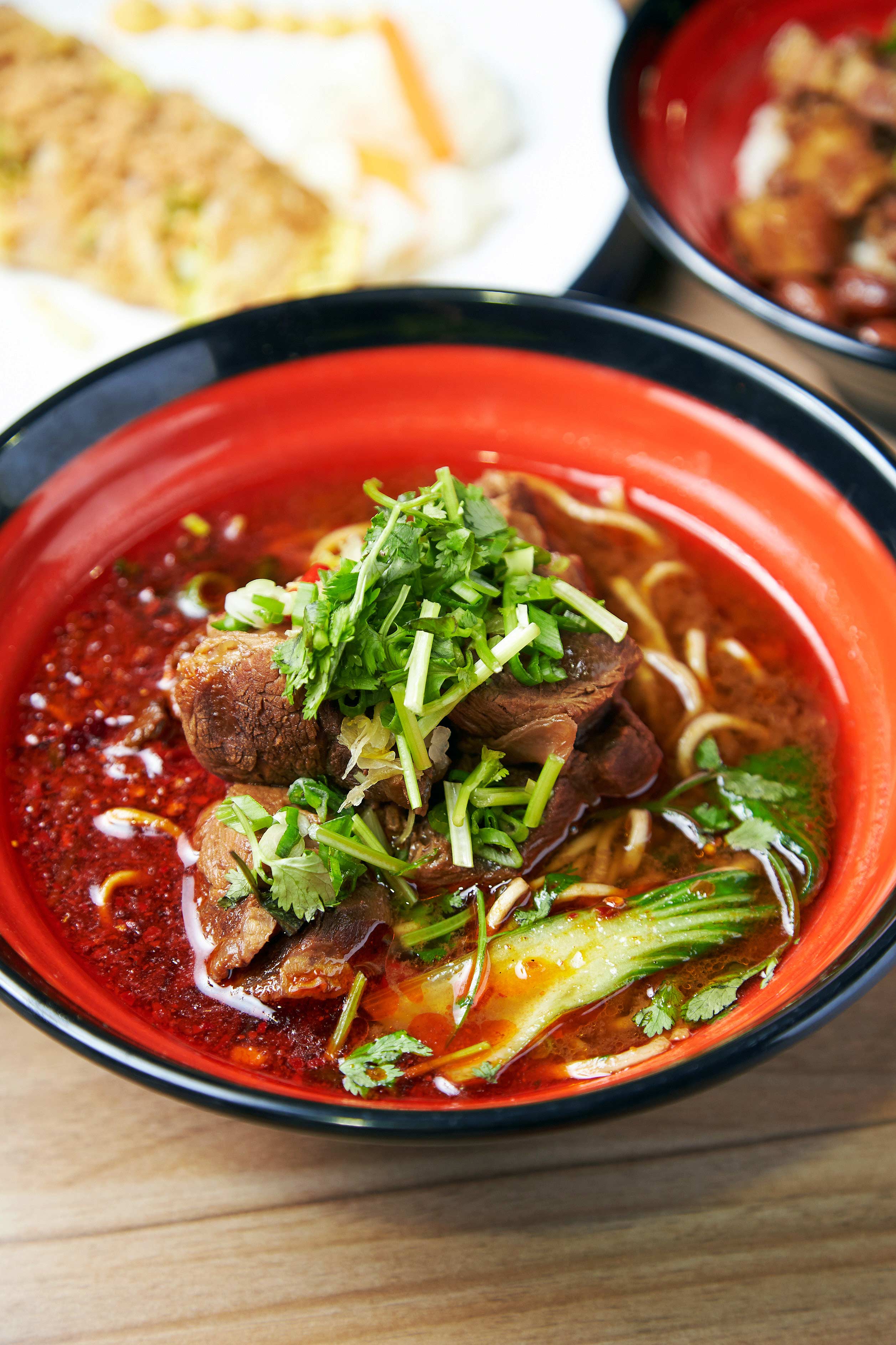 The most expensive item on Str Tao Taiwan Cuisine’s menu, for good reason. You get a generous portion of beef shank that’s first sauteed with fermented bean paste and garlic, then left to bubble away for five hours with cinnamon, star anise and peppercorns. The result is an umami-rich, hefty broth that’s very slurpable. It’s served with thin rice noodles and diced salted veg, as well as a generous spoonful of chilli oil. The beef, which comes as sizable chunks, isn’t fall-apart tender – our only gripe – but soft enough to get through within a couple of bites.