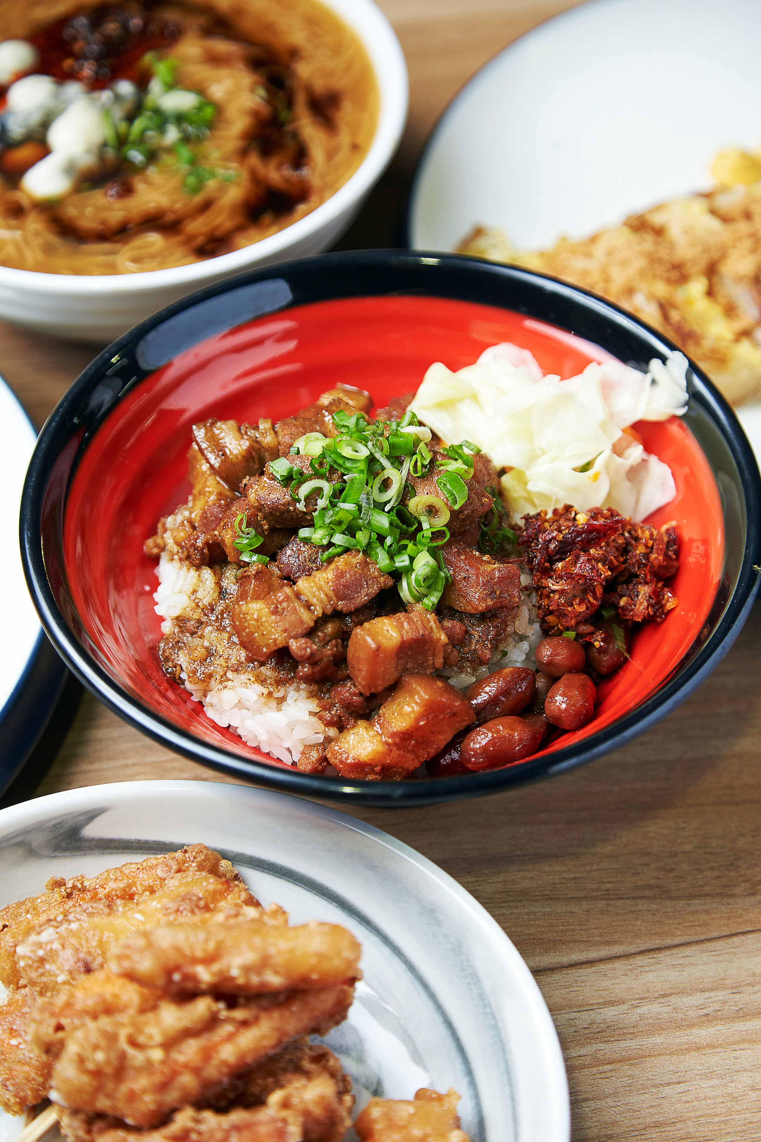 Sizable chunks of pork belly – a departure from the finer pieces you’d typically get in one of Taiwan’s most iconic comfort foods – are braised for two hours with fried shallots, soya paste and a secret mix of spices (we taste some star anise and cinnamon), and served over Taiwanese pearl rice.