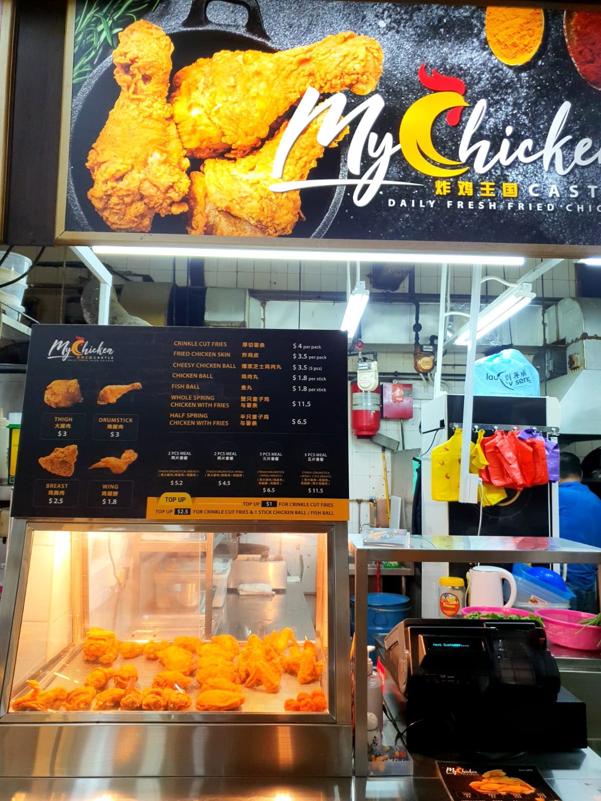 We haven’t had the chance to try the nosh yet, but the cheapest item on My Chicken Castle’s menu is the wing at $1.80, followed by breast meat for $2.50. Thigh meat or drumsticks cost $3 apiece. Or choose a bundle meal.