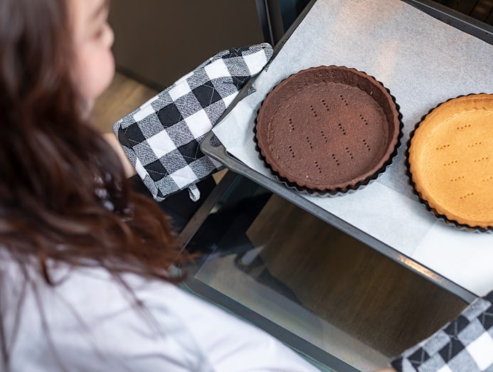 Fann is offering only two types of whole tarts for now, a Musang King Gula Melaka Tart ($68) and Signature Valrhona Chocolate Tart ($58). The flavours are inspired by her husband Christopher Lee and son Zed, who are both chocolate fans (Chris is also a durian lover). More desserts will be introduced in the future.