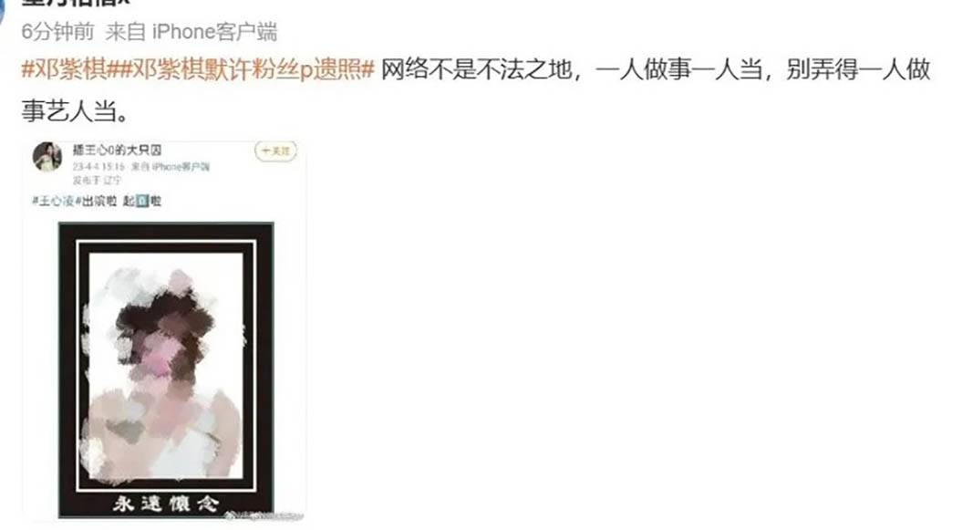 And on that day, a netizen professing to be a fan of Hong Kong singer G.E.M., 31, posted a pic of Taiwanese singer Cyndi Wang photoshopped as a funeral portrait.