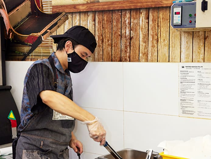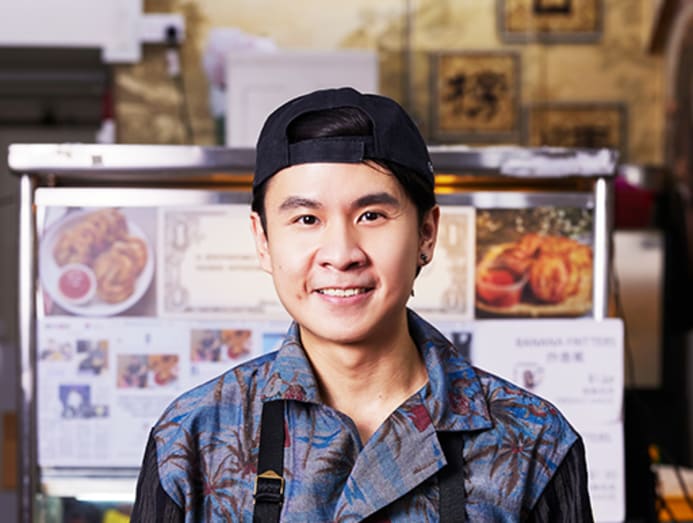 From 8am till the evening, six days a week, hawker Amos Ananda Yeo is on his feet frying piles of prawn and banana fritters, nian gao (sweet rice cake) and tapioca. The hot oil from the portable fryer, perched on a makeshift table, splatters on his hands. Faded burn scars dot his arms, and he looks visibly tired.