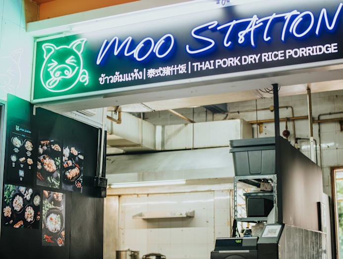 Moo Station’s offerings are lean and straightforward: Two sizes of their Signature Pork Dry Rice Porridge (which comes with slightly different toppings) starting at $5; Pork Porridge ($4.50) and accompaniments like Crispy Pork Belly ($6) and Fried Pork Skin ($1.50). There’s even an unorthodox Onsen Egg add-on ($0.80).