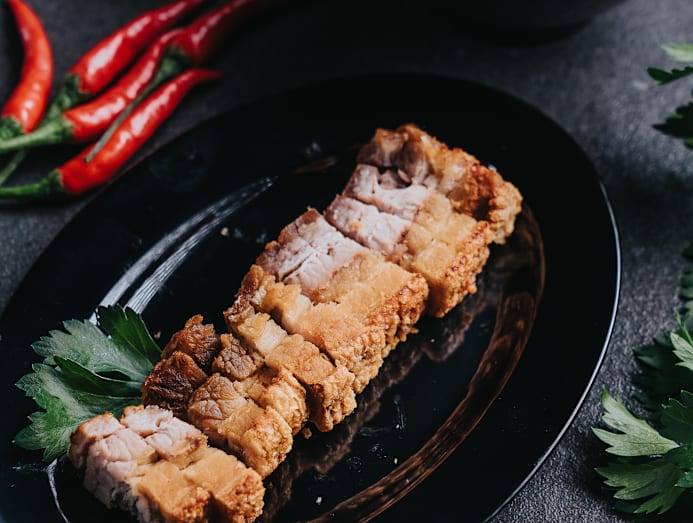 Moo Station’s crispy pork belly is marinated, roasted then deep-fried for optimum crispiness, Sandy tells us. It’s also served alongside a nan jim (Thai-style chill sauce) dip (not pictured).