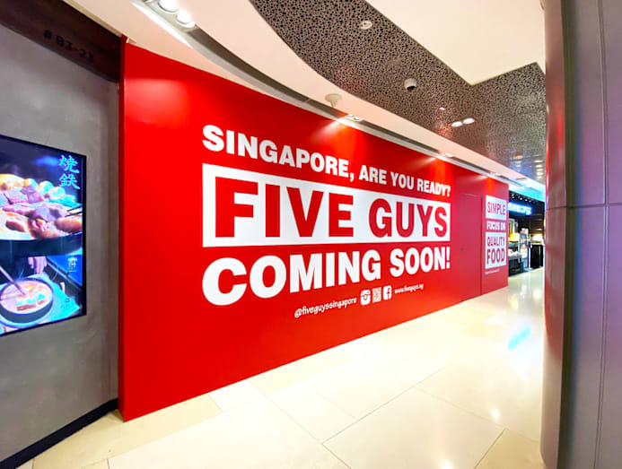 The upcoming outlet is currently under renovation, with the hoarding in Five Guys’ signature red still up.
