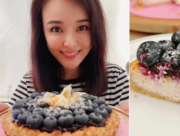 Yummy factor: Despite being in Malaysia, good friend and former Mediacorp actress Ong Ai Leng sent over a whole blueberry cheese pie from online bakery Baker Next Door to Apple, who absolutely adored the decadent dessert. What a treat the gorgeous golden brown crust must have been with the cheese and berries.