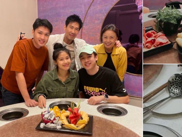 Yummy factor: Anyone else dunks fried beancurd rolls or fried fish skin into their hotpot broth to soak up the goodness? Along with Yixin's boyfriend, actor Gavin Teo, the Chen family got to enjoy their first meal out together as a family since Yixin returned from her overseas stint. Plus: Everyone had their own personal hotpot, which meant they could all choose their preferred broth.