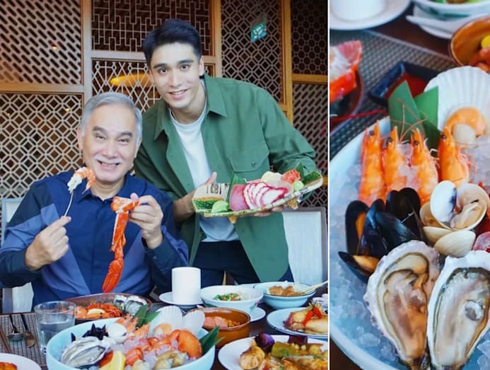 Yummy factor: Joel and his dad, actor Zhu Houren, checked out the buffet at Edge at Pan Pacific Hotel, and boy did they have a feast fit for kings — there were whole lobsters, fresh sashimi and oysters, as well as plenty of other seafood and more. Talk about a sea-riously indulgent meal.