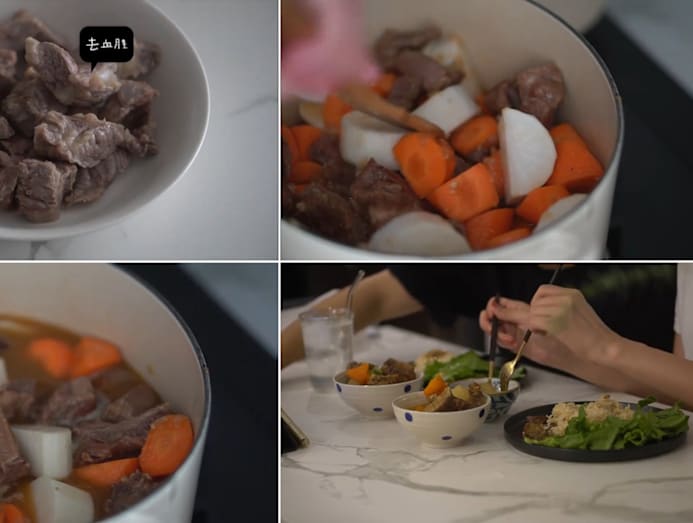 Yummy factor: There’s just something therapeutic about watching Jesseca’s vlogs. This week, she made pork rib stew to enjoy with hubby Jeremy Chan, carefully blanching and stir-frying the meat before simmering them with vegetables in stock. It must have been pretty shiok to have it with fluffy rice.