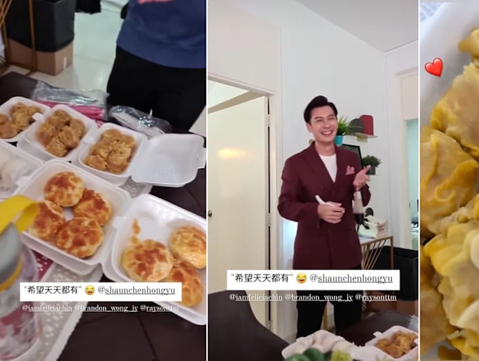 Yummy factor: Shaun couldn't be more bashful to have his Leave No Soul Behind co-stars Chantalle Ng and Felicia Chin, as well as the rest of the crew, thank him for getting everyone dim sum for their tea break. Well, he's certainly set the standards high with the amount of snacks he got — there were pineapple buns, siew mai, bao and more.