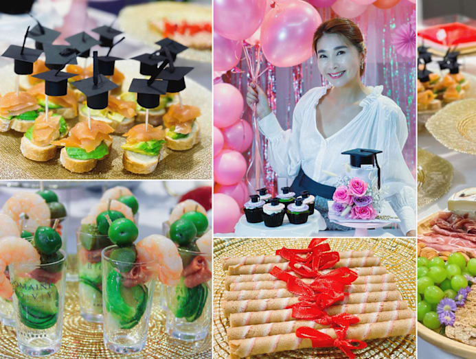 Yummy factor: Although her daughter Shanisse Tsai’s in-person graduation ceremony had to be cancelled due to the heightened restrictions, Xiuhuan wanted to make the occasion a special one for her nonetheless. And what better way than to do it with food? And so the proud mum got busy preparing a full table of grad-inspired treats — think wafer rolls wrapped with ribbons to resemble scrolls, canapes and cakes topped with mortar boards and more. How sweet is that?