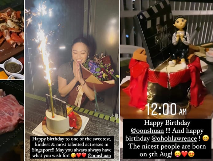 Yummy factor: Just as the clock struck midnight on Aug 5, Michelle Chong made sure to wish Shu An happy birthday in person, and with the flashiest (literally) of cakes no less. It came fully decked-up with flashing lights, a classic clapper, and a 3D caricature of Shu An sitting on a theatre stage. And for an extravagant supper, Alaskan king crabs marinated with sake and Japanese marbled beef were placed on the grill.