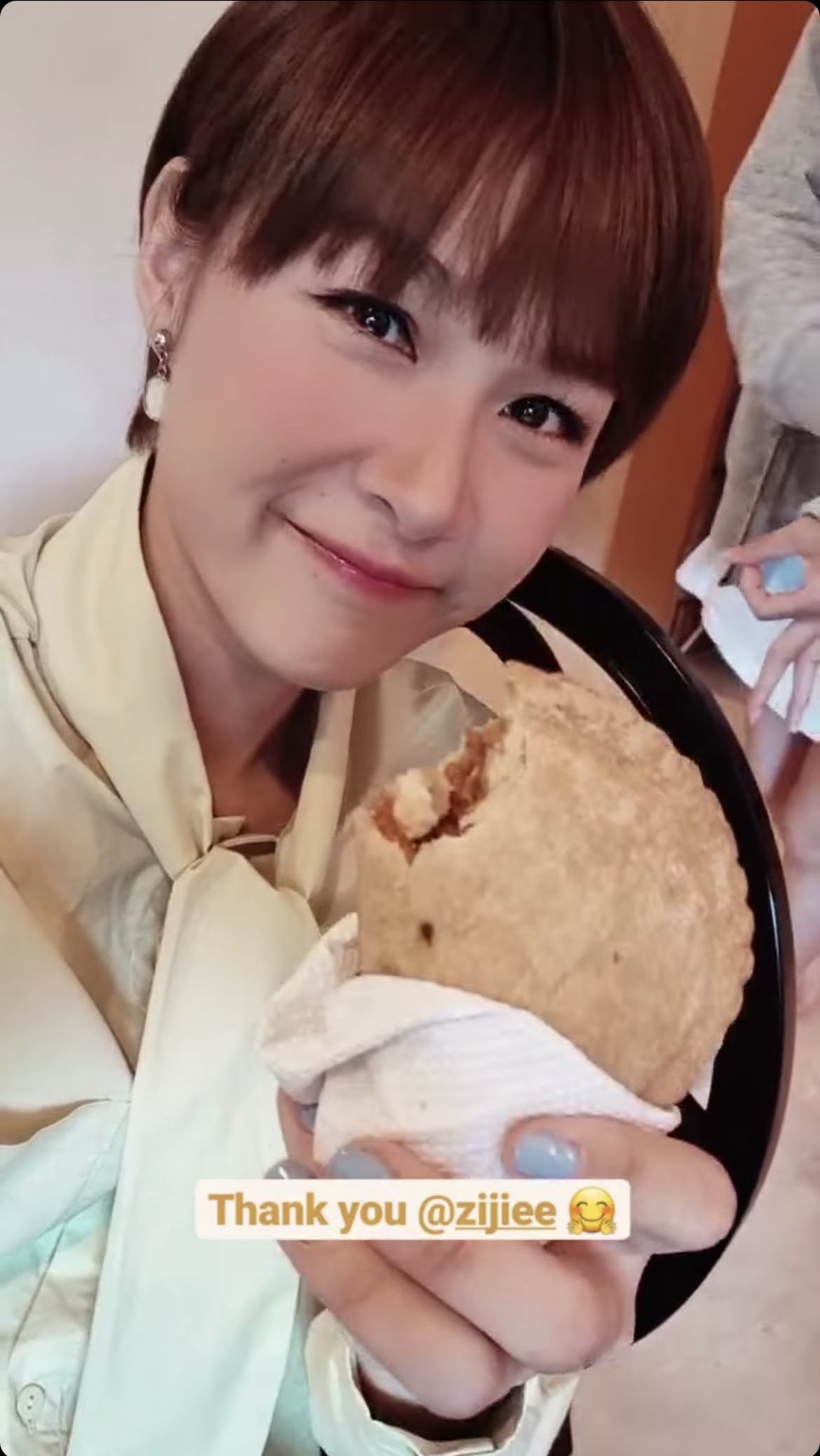 Yummy factor: A quick snack break is always welcomed at work, and Ya Hui couldn't be happier to receive a huge curry puff from her Truth About Us co-star Zong Zijie to nom on. And she must have been really hungry — a bite was already taken before she filmed an Instagram Story with it.