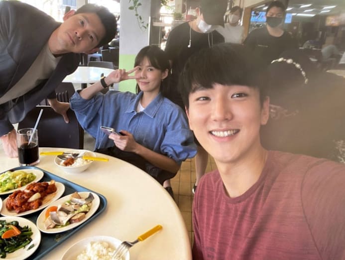 Yummy factor: Romeo, Carrie and Siming, who are shooting upcoming drama The Peculiar Pawnbroker, tucked into a simple cai png meal of sweet and sour pork, fish, and plenty of greens with rice, while filming at a coffee shop. Sure looks like a shiok meal.